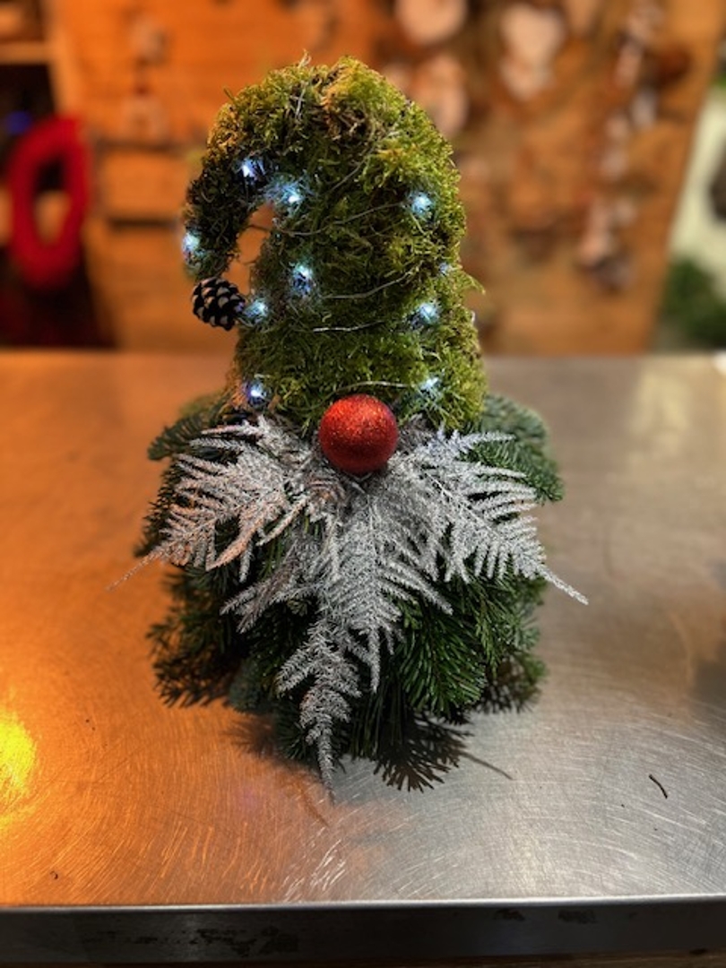 Meet our Forrest Gonk....looking for a home at Christmas! He's made of fresh Christmas greens and moss with battery lights on his hat. Perfect Christmas gift for all you Gonk lovers out there!